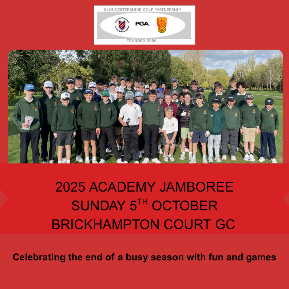 The 2025 County Academy Jamboree took place on Sunday 5th October at Brickhampton Court GC on a relatively calm day given the previous 2 days of Storm Amy! Over 60 players took part which is the most we have had at this event. Well done to all the players and BIG thank you to Brickhampton Court GC staff and helpers on the day. RESULTS HERE